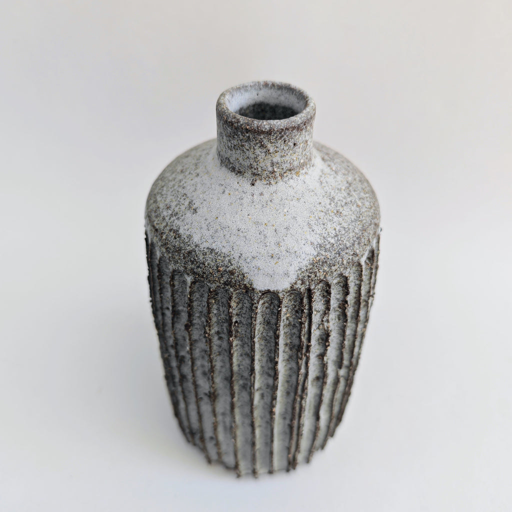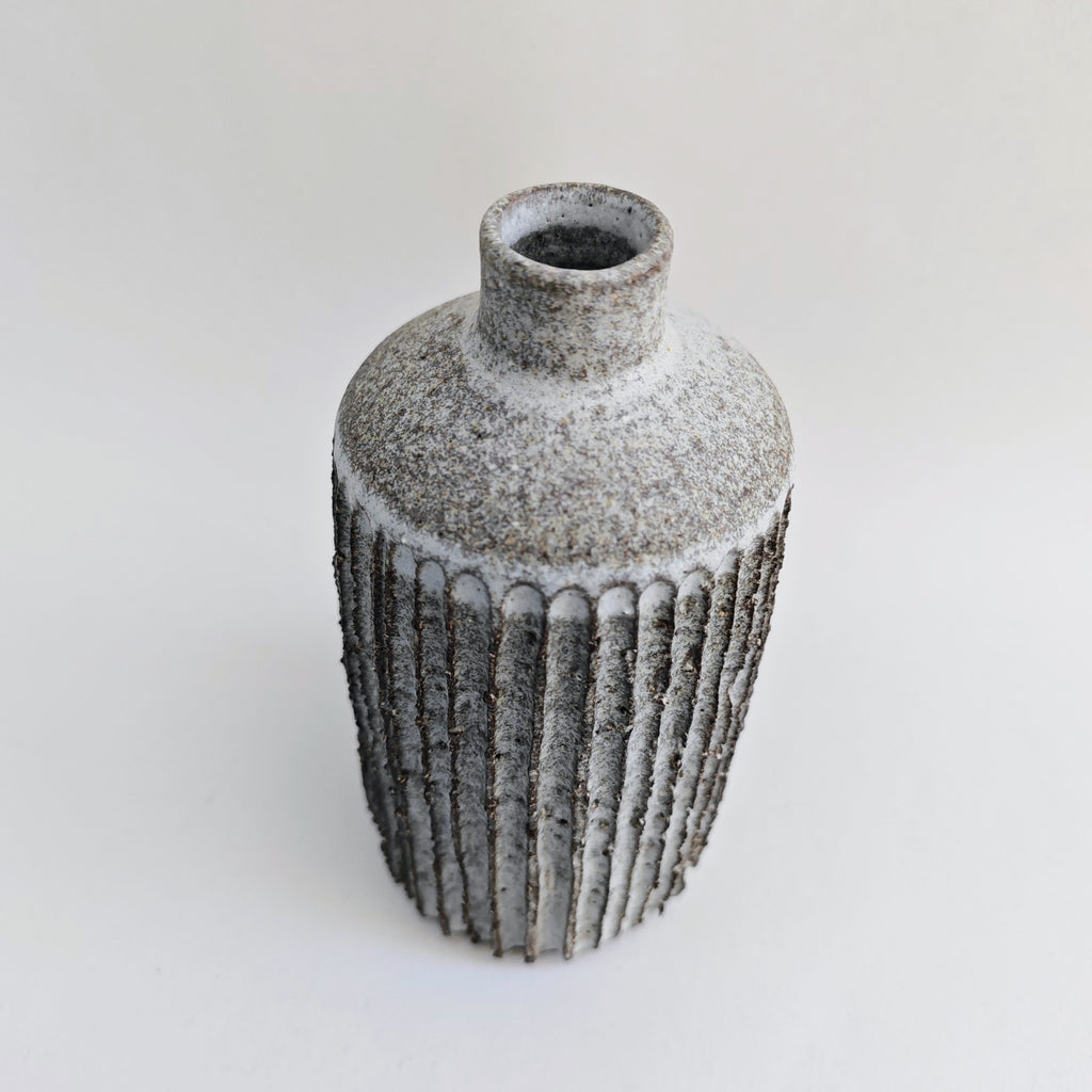 bottle carved with textured fluted lines