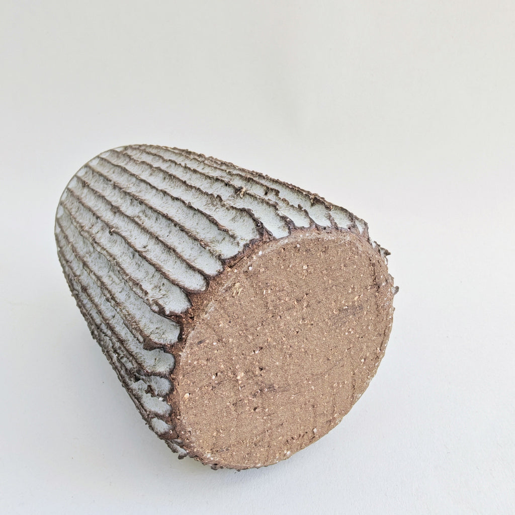 matt white glaze on grogged stoneware clay