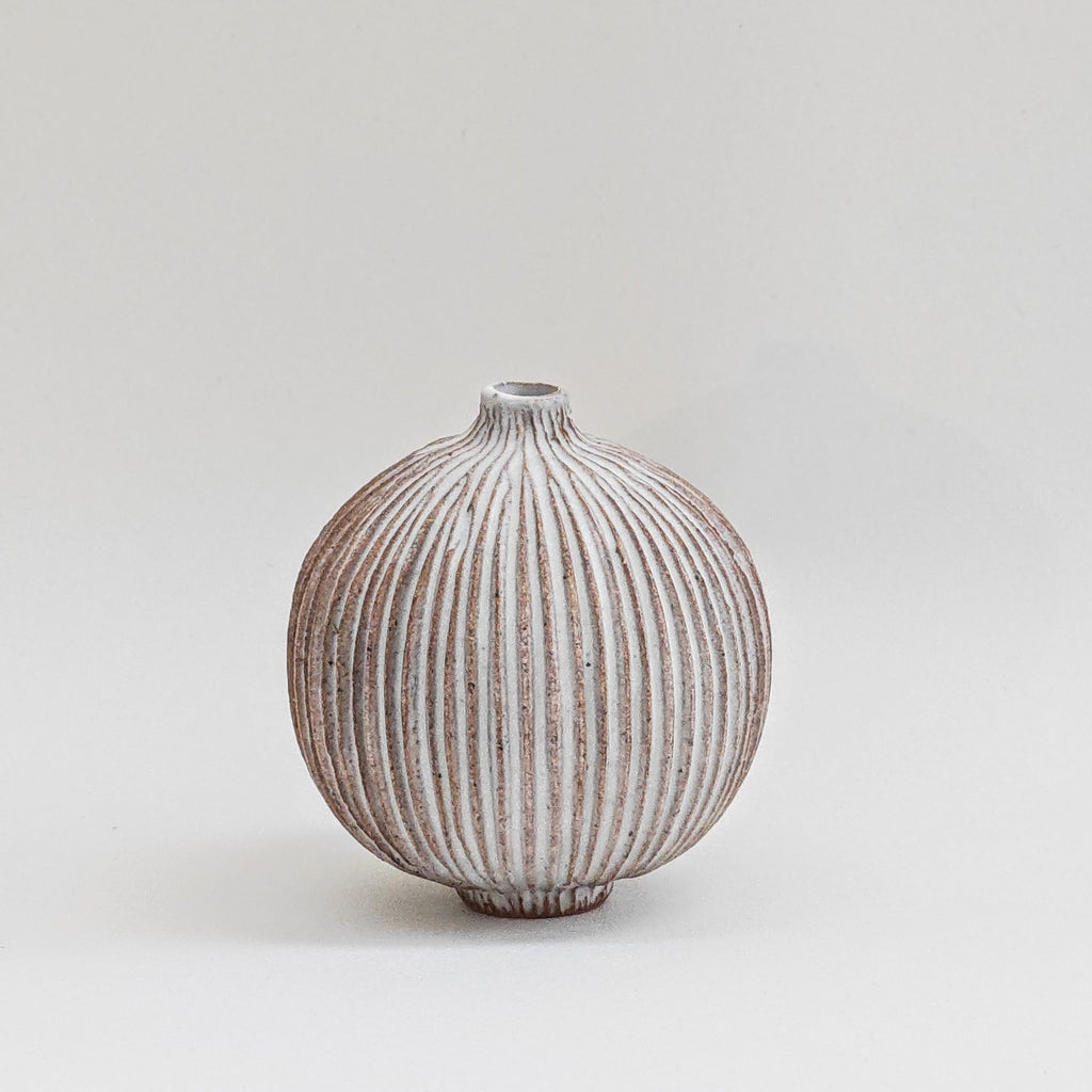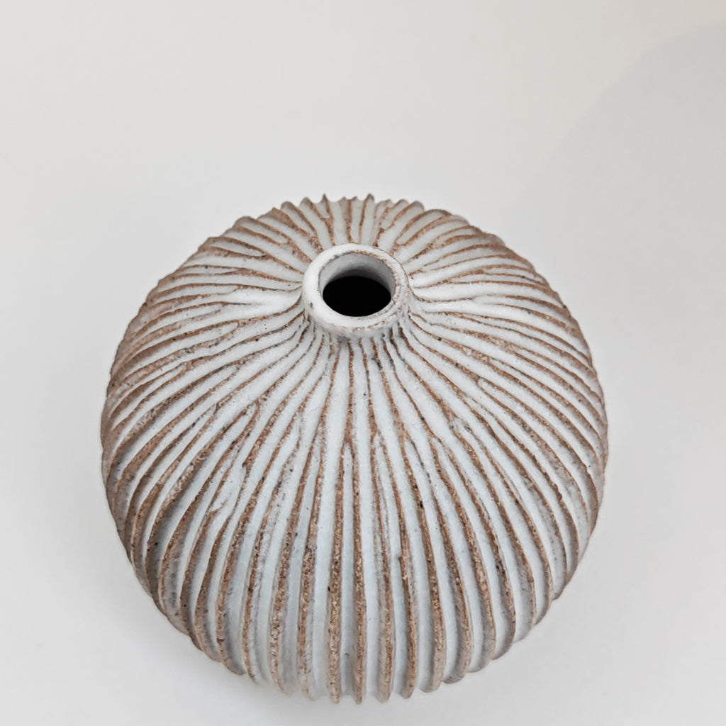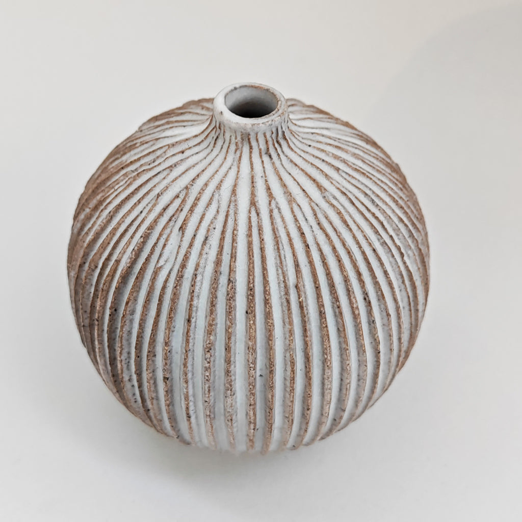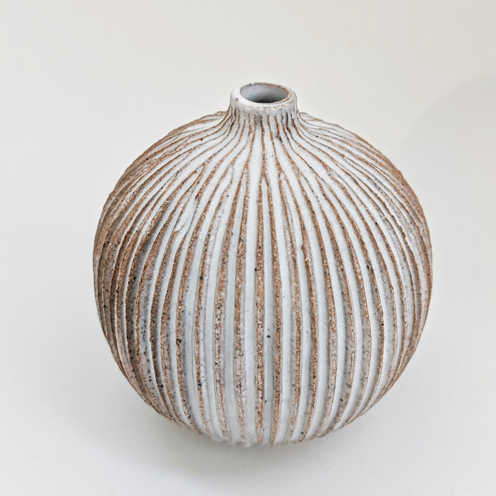 matt white glaze on thrown and carved stoneware clay