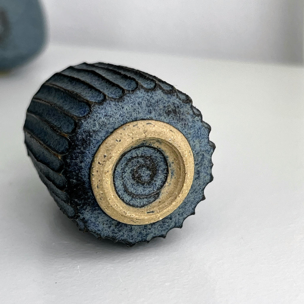 matt blue glaze on stoneware clay