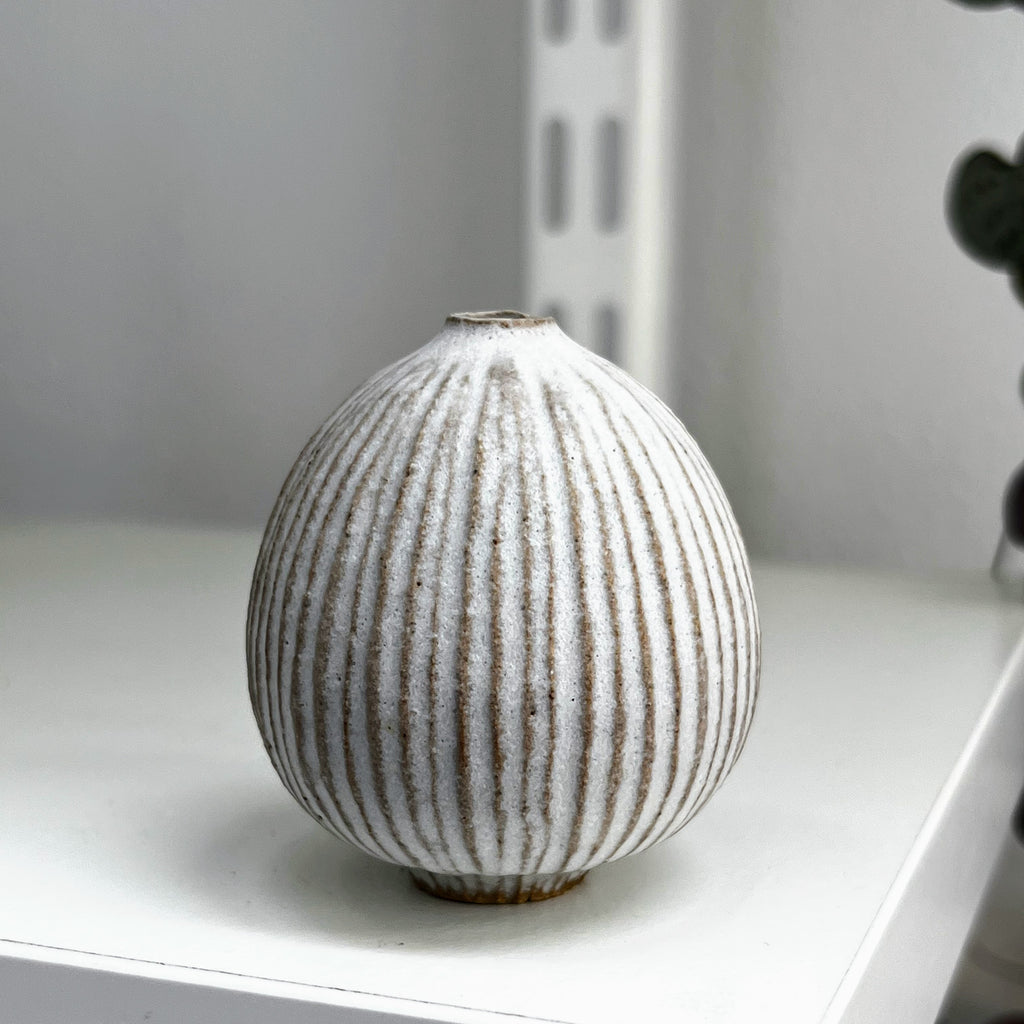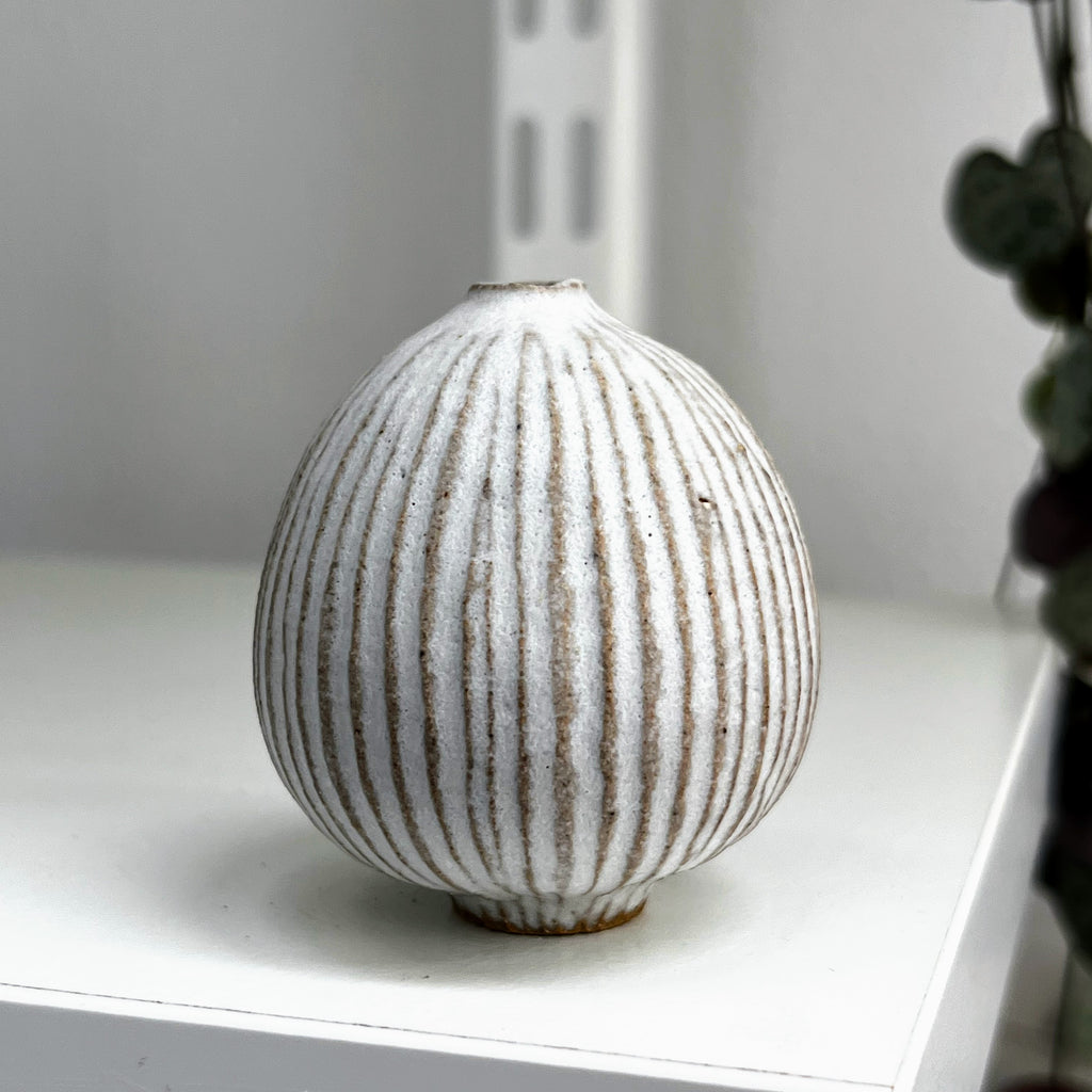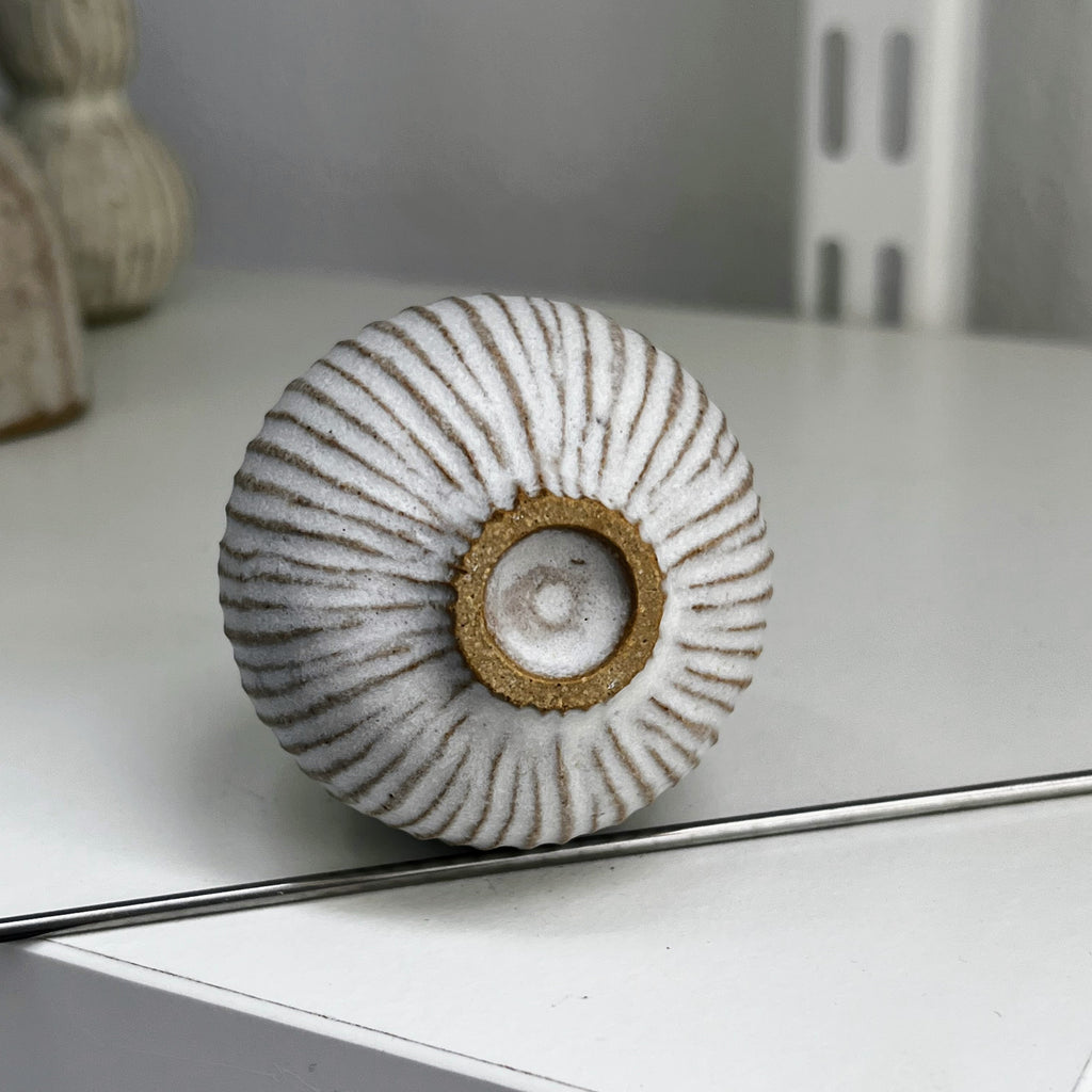 matt white glaze on fluted stoneware clay