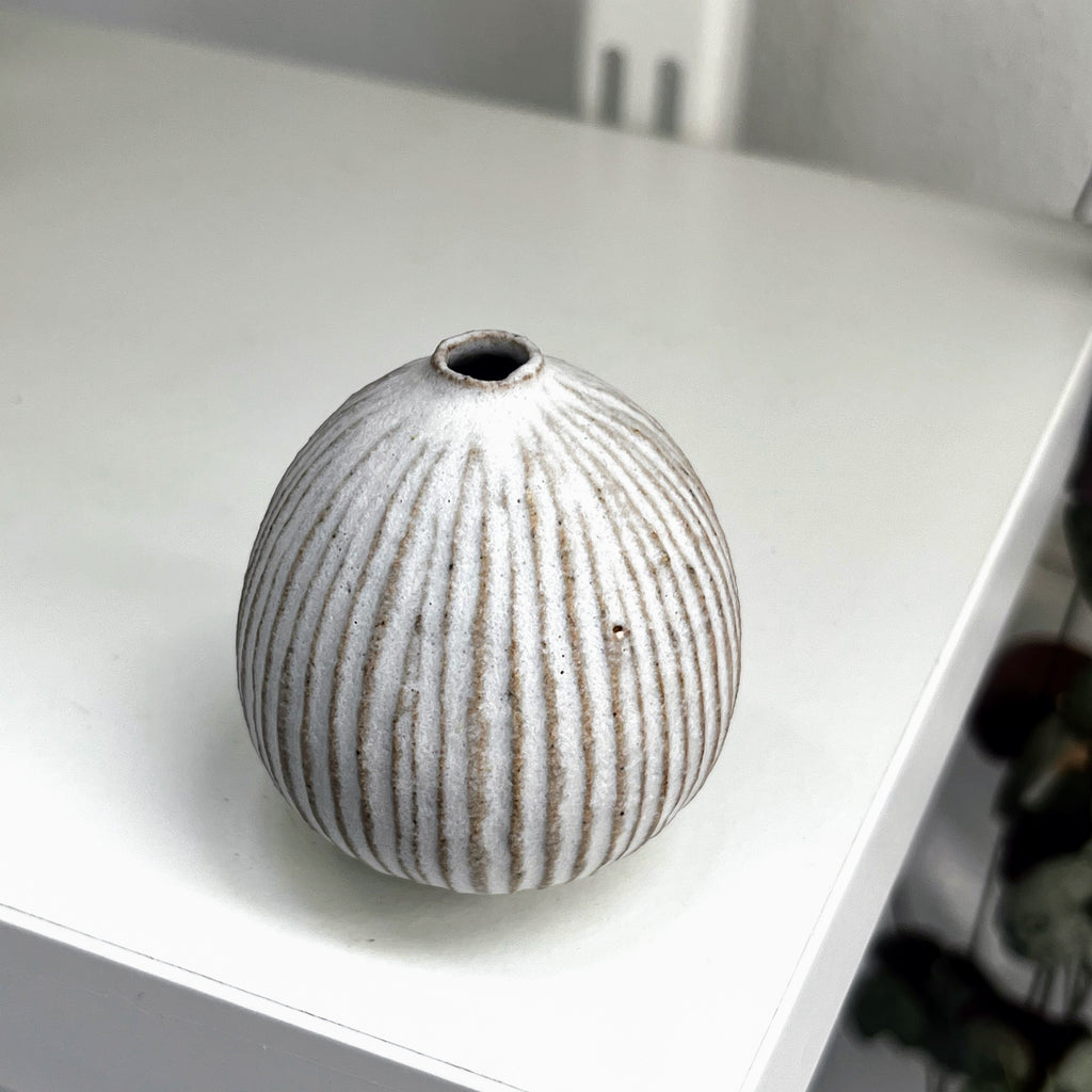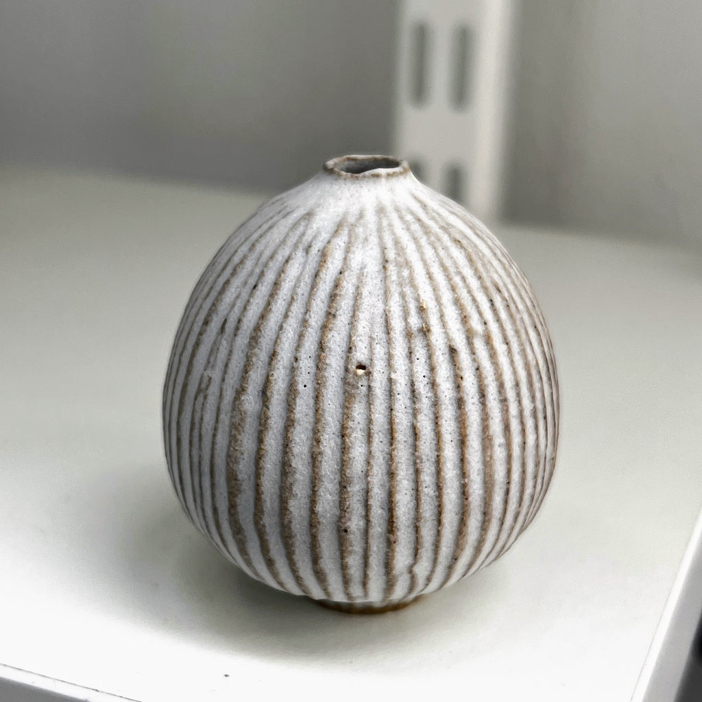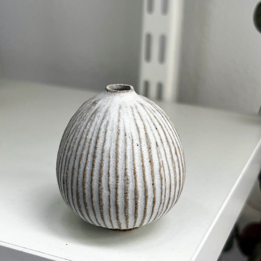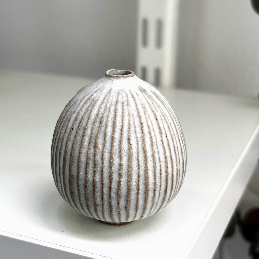 matt white glaze on fluted stoneware clay