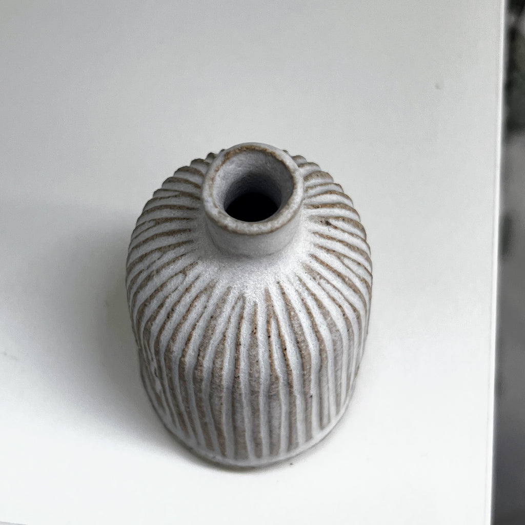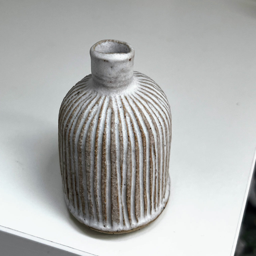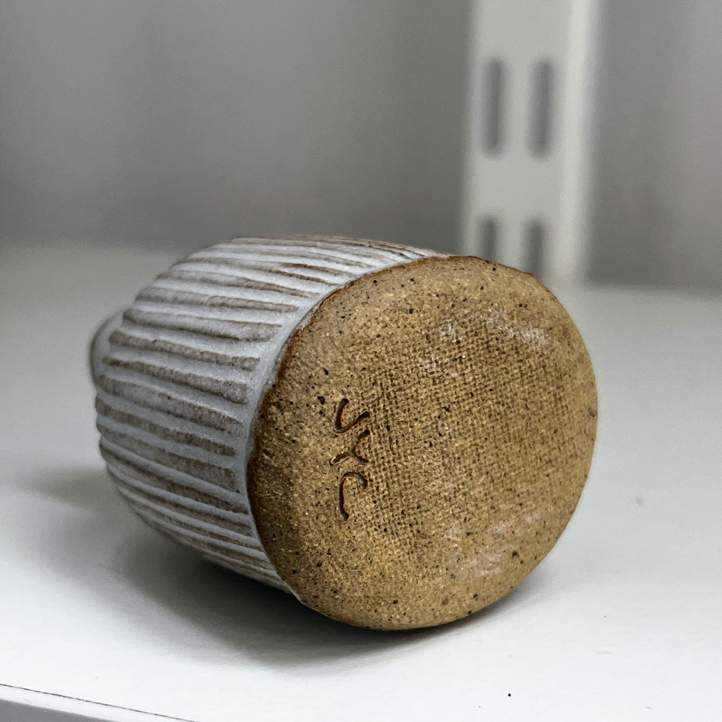 matt white glaze on fluted stoneware clay