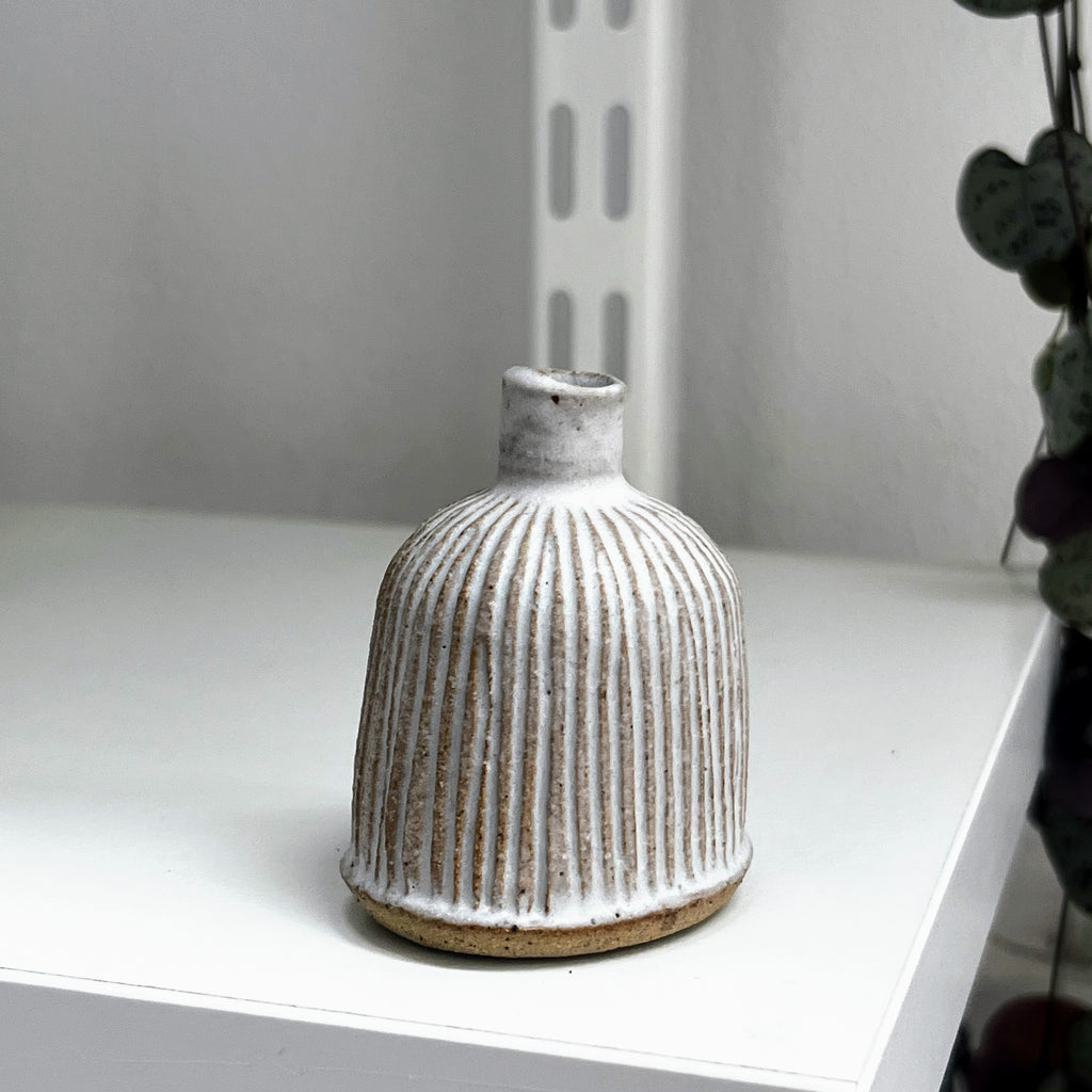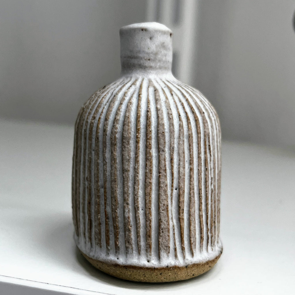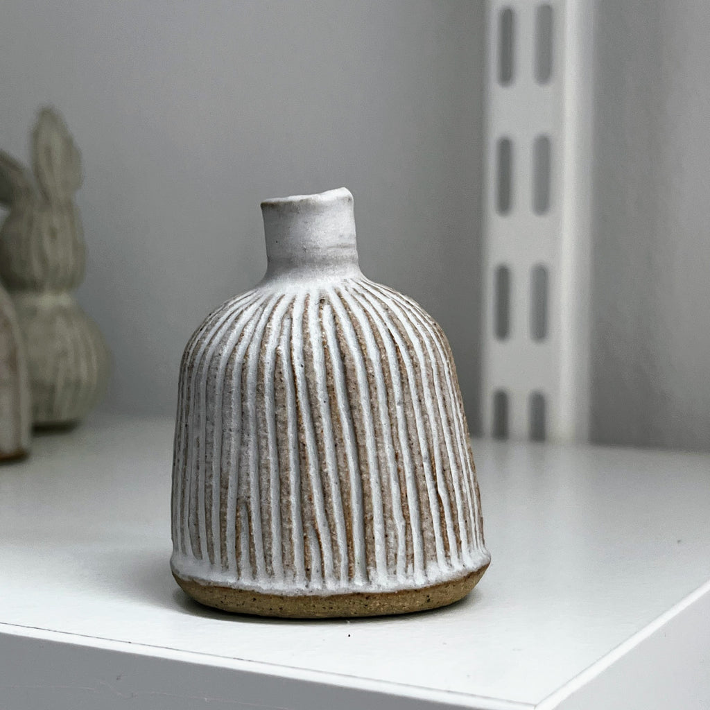 matt white glaze on fluted stoneware clay